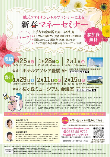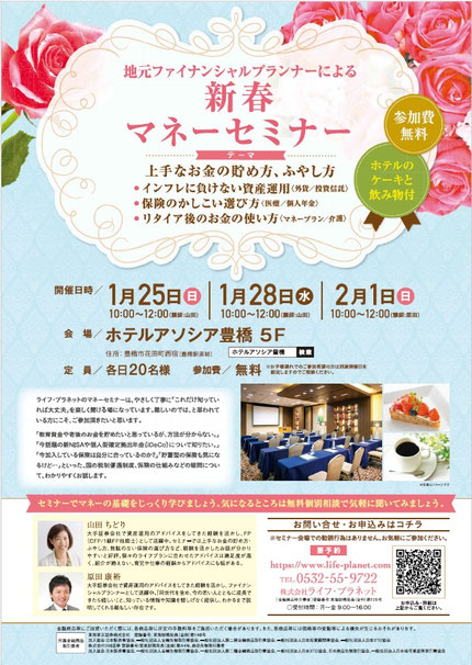 ライフ・プラネットでは、新聞やテレビなどの情報だけでは得ることのできない、ご家族を守り賢く生きる知恵を養うためのマネーセミナー・資産運用セミナーを行っております。セミナーは自主開催をはじめ、各社合同の講演会も行っております。資産運用が初めてという方から、基礎的な生命保険・証券商品に加えプラスアルファの知識が欲しいという方まで、お気軽にご参加ください。お子様連れでご参加いただけるセミナーも開催しております。
