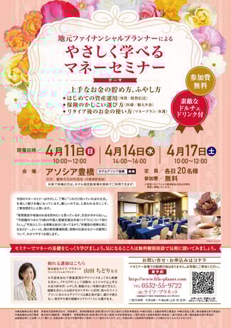 ライフ・プラネットのマネーセミナーはやさしく、丁寧に「これだけ知っていれば大丈夫」を楽しく聞ける場になっています。難しいのでは、と思われる方にこそ、ご参加頂きたいと思います。